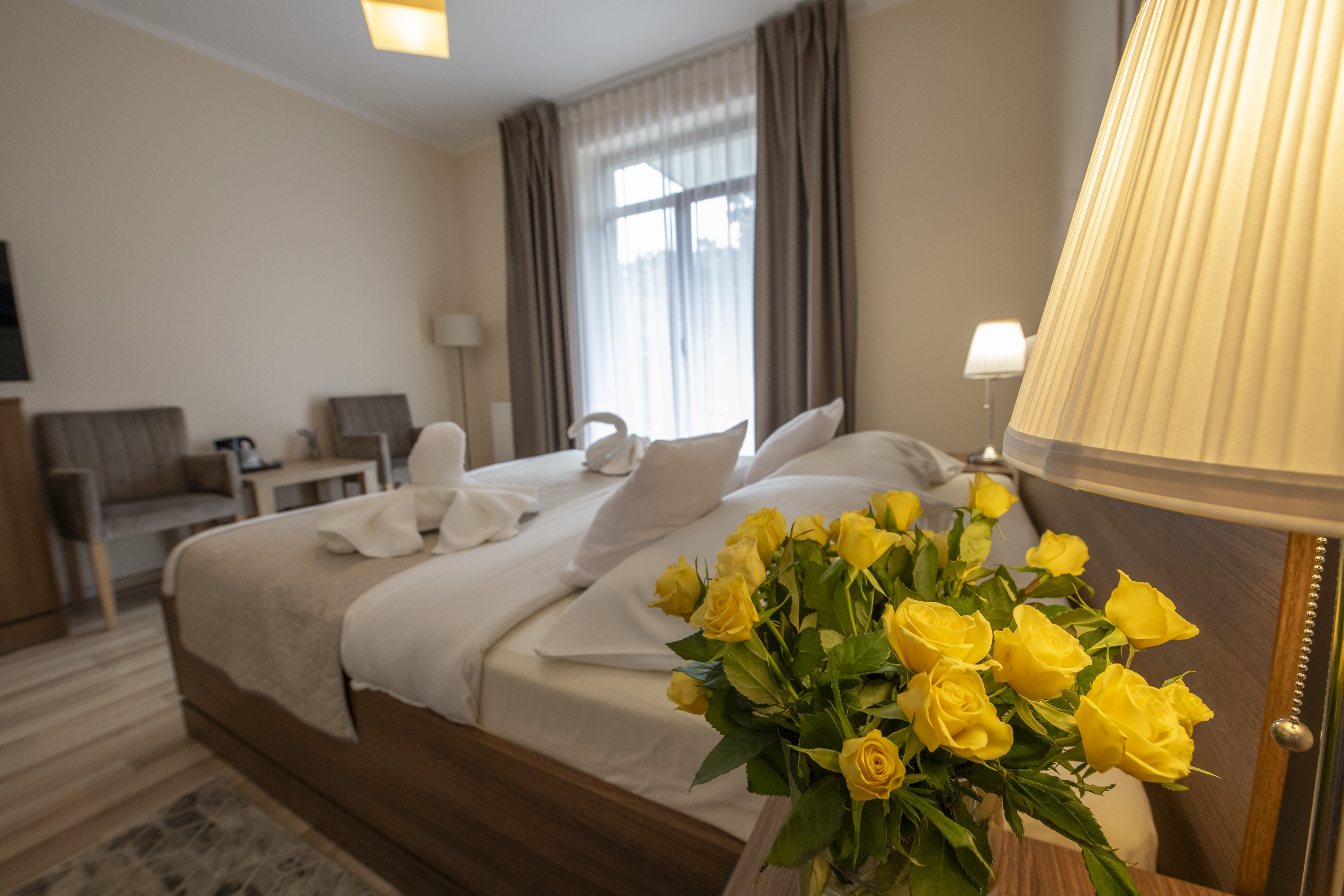 Von den meisten Zimmern bietet sich ein schöner Blick auf den Wald oder unseren Garten, und die Lage des Objekts garantiert Ruhe und Frieden. In den Zimmern sowie in den öffentlichen Bereichen bieten wir kostenlosen Zugang zu Wi-Fi.